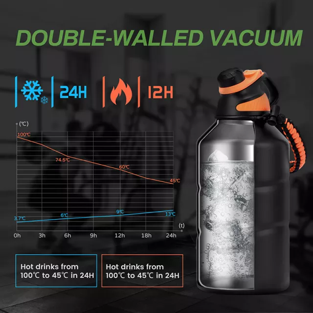 This is more than just a water bottle—it’s a high-capacity hydration solution built for performance and style. Whether you’re pushing through an intense workout, hiking under the sun, or enjoying a winter picnic, you can trust this flask to deliver the perfect drink temperature for hours. Say goodbye to constant refills and hello to all-day refreshment.