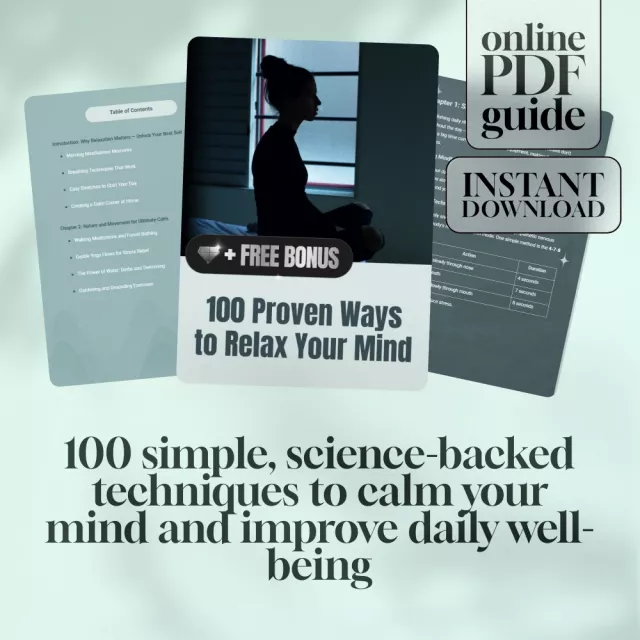 This guide is for anyone looking to bring more peace into their life. Whether you’re a busy professional, a full-time parent, a student under pressure, or someone healing from burnout, 100 Proven Ways to Relax Your Mind is the calming resource you’ve been craving. It’s also great for therapists, coaches, yoga teachers, or wellness creators looking to offer clients more tools for relaxation.