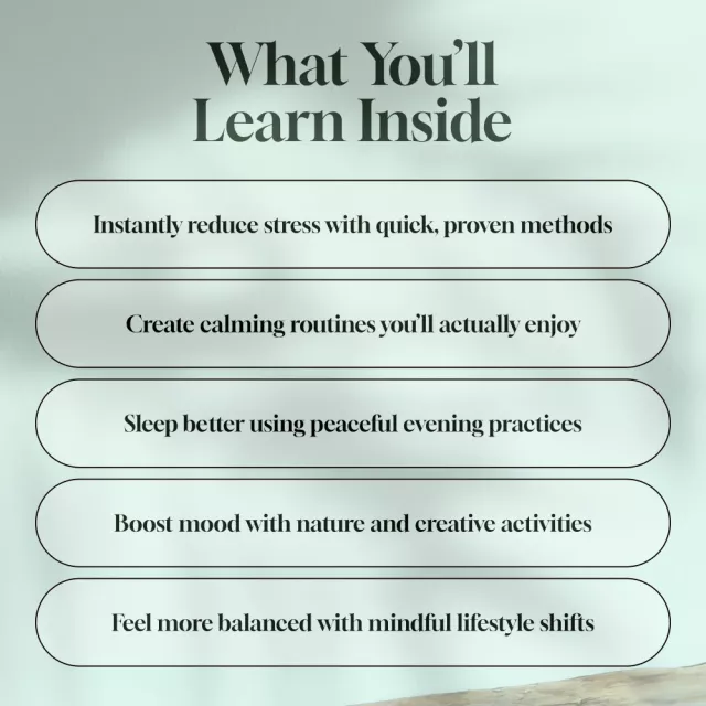 This isn’t just another self-help eBook. It’s your go-to companion for slowing down, tuning in, and creating more space for joy in your everyday life. With easy-to-follow practices for body, mind, and lifestyle, you’ll finally have the structure—and the inspiration—you need to feel better fast and stay balanced for good.