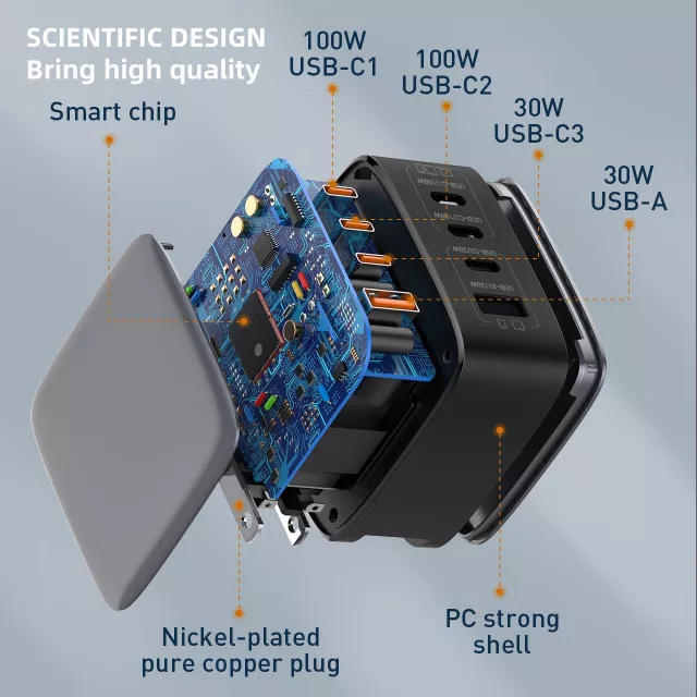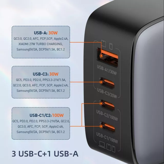 • Multi-Device Charging: 3 USB-C ports + 1 USB-A port for simultaneous charging
