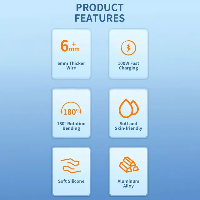 • Stylish and Durable: Choose from black or orange colors and enjoy a cable that lasts with liquid silicone material.