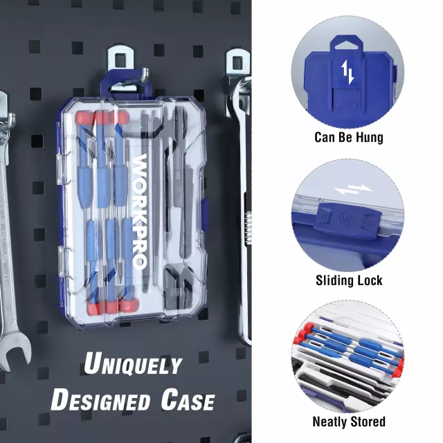 This screwdriver set shines when used for delicate repairs and adjustments. It’s best used when handling eyeglasses, watches, mobile phones, tablets, laptops, or any small electronics. With its variety of Torx sizes, you’ll always have the right tool for the job, ensuring your projects are done quickly and efficiently.