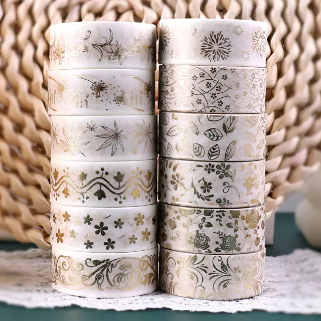 12 Rolls Gold Foil Plant Washi Tape Set for Scrapbooking & DIY Crafts