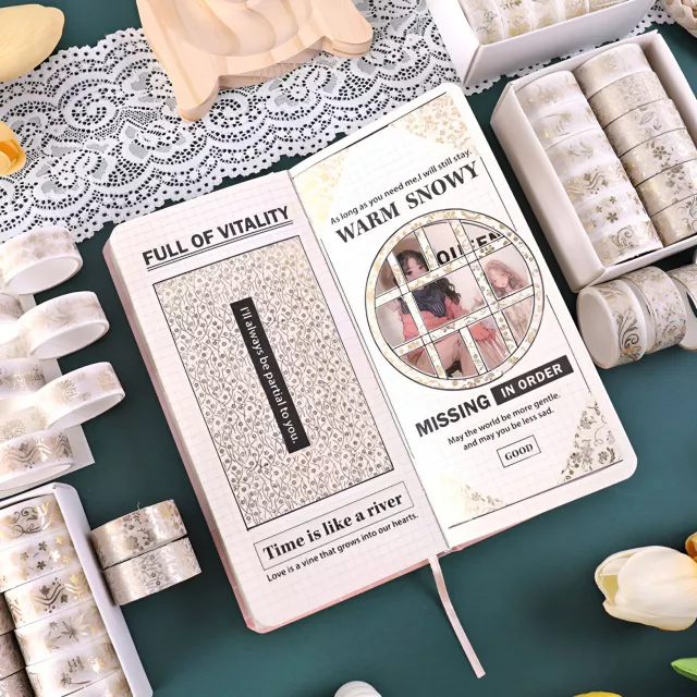 Best used when you want to add a personal, decorative touch to your creative work, this set is perfect for seasonal projects, event invitations, or everyday journaling. Its mix of soft botanical patterns and luxurious metallic highlights makes it special and stand out from ordinary tapes. With this washi tape set in your collection, you’ll always have the right design for any project.