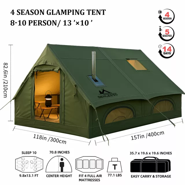Step into outdoor comfort and convenience. Transform your camping experience with this spacious, inflatable, waterproof tent—your perfect companion for adventures in any season.