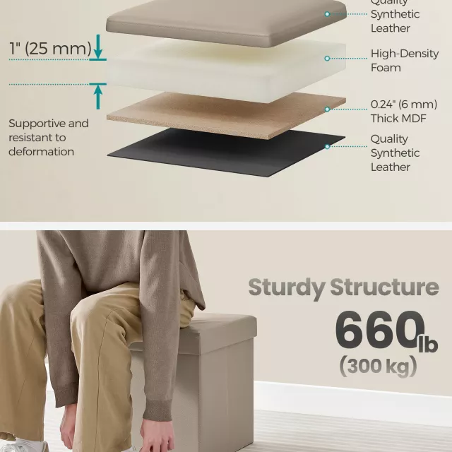 Its 660 lb weight capacity means that it’s strong enough to be used for sitting or as a sturdy surface. You can use it as a footrest after a long day, or place it at the end of your bed to store your blankets, pillows, or other essentials. The foldable feature makes it a great choice for anyone looking to save space without compromising on function.