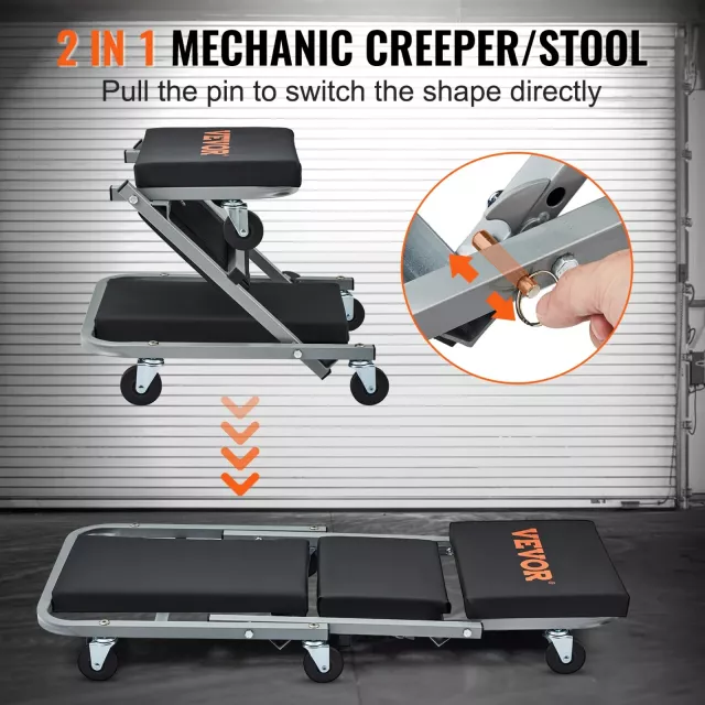 • Versatile Design: Quickly switches between creeper and stool mode for maximum convenience.