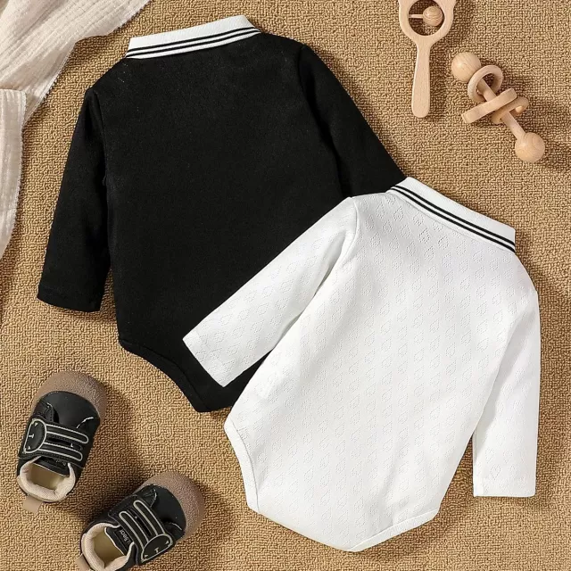2-Pack Baby Boys Long Sleeve Button Collar Solid Jumpsuits 0-18M Streetwear