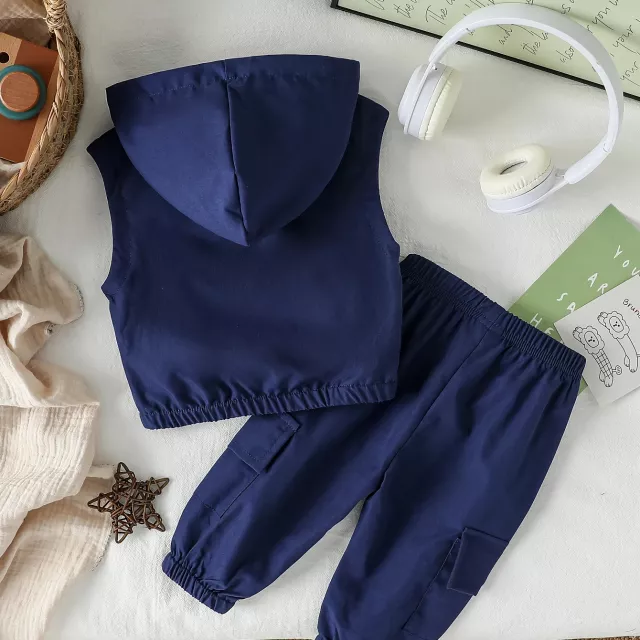 Keep your little one cozy and stylish through the crisp days with this 2-piece baby boys’ hooded vest and pants set. Designed for comfort and everyday wear, this outfit combines softness, warmth, and an effortlessly cute look. The solid-color design makes it easy to pair with other items in your child’s wardrobe, while the sleeveless hooded vest adds a touch of playful charm. Perfect for playdates, family outings, or simply relaxing at home, it’s a must-have addition to your baby’s seasonal clothing collection.