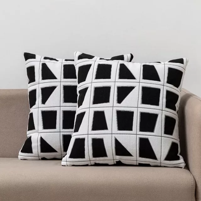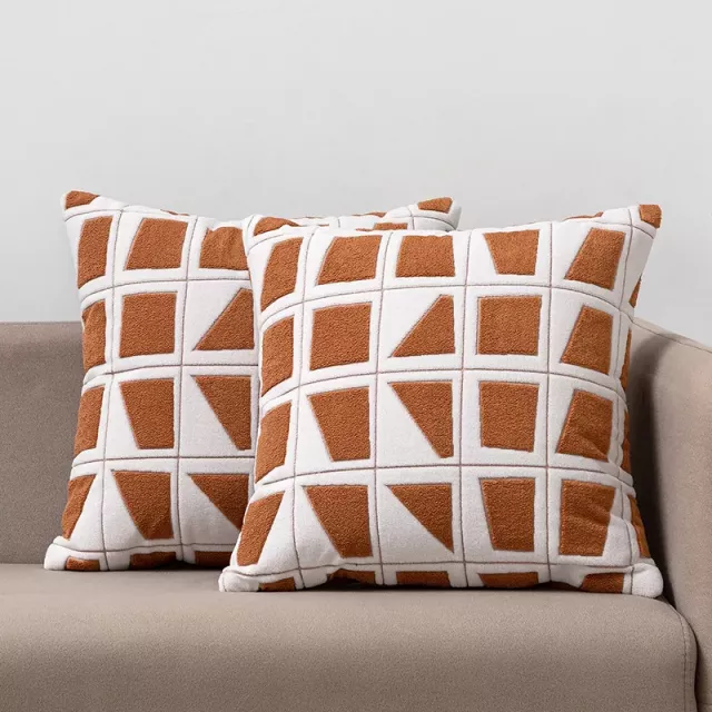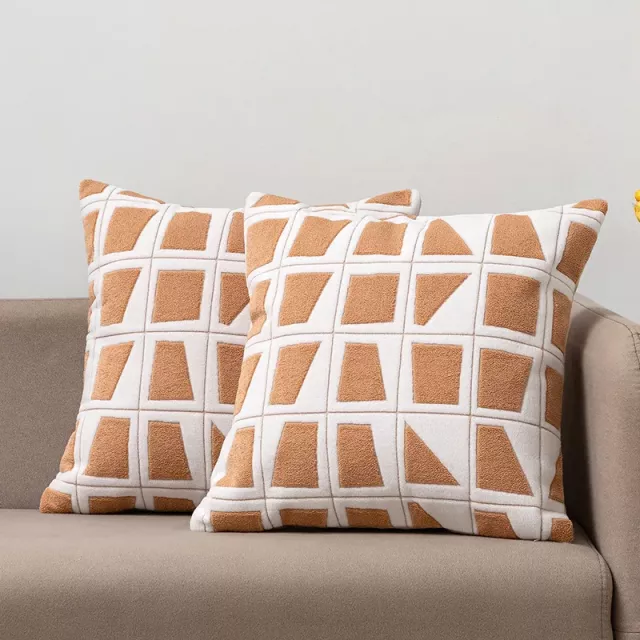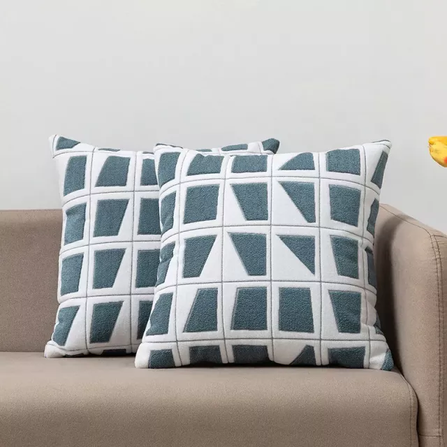 Bring a touch of style and comfort into your home with these 2-Piece Modern Geometric Embroidered Cushion Covers. Designed with a chic geometric block pattern, these pillow covers add an instant upgrade to any sofa, bed, or armchair. Crafted from a durable blend of polyester and cotton, they combine elegance with everyday practicality. Measuring 18 x 18 inches, they are the perfect size to refresh your living room, bedroom, or even the seats in your car or office.