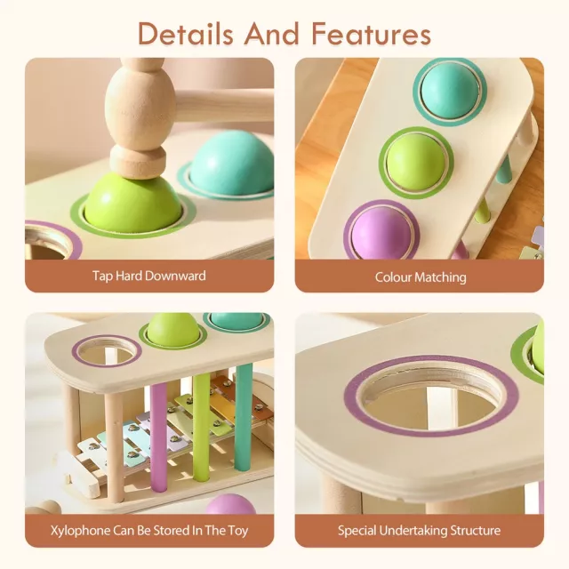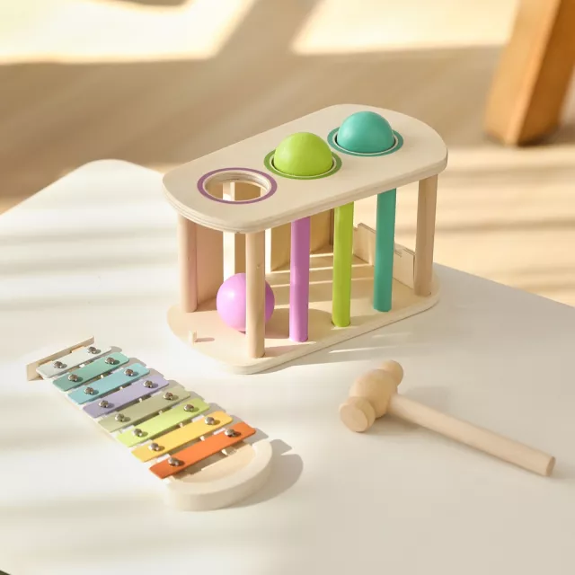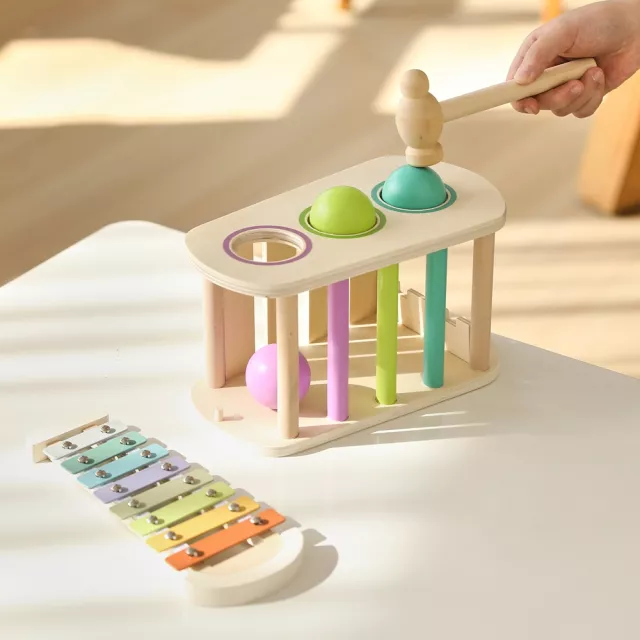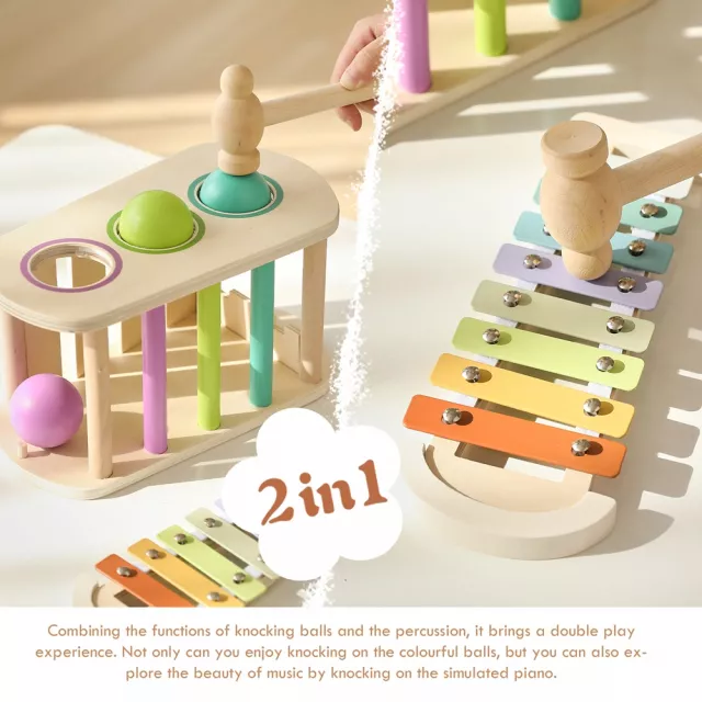 Introduce your little one to the joy of music and play with this charming 2-piece wooden musical toy set. Designed specifically for babies aged 6 to 12 months, this set features a colorful percussion xylophone and an engaging mole game that bring sound, rhythm, and fun together. Crafted from smooth, natural wood, these toys invite tiny hands to explore and create, nurturing early creativity and coordination.