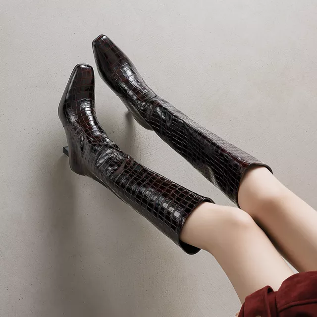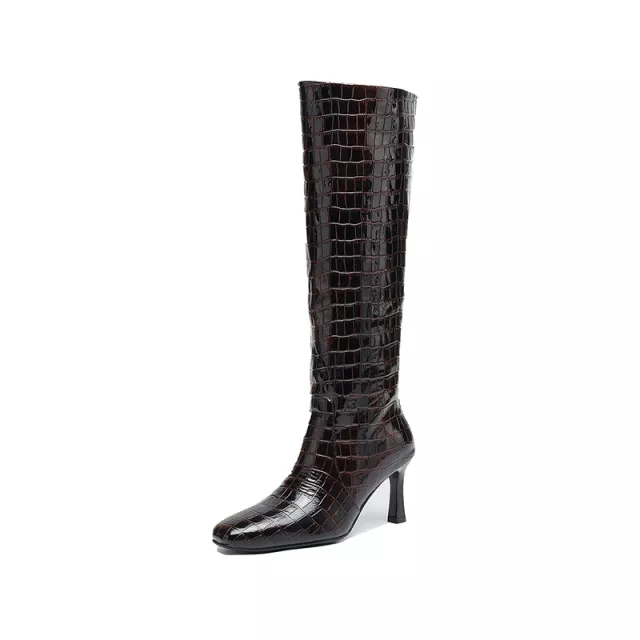 Bring your style to new heights this season with these stunning women’s brown knee-high boots. Designed with a sleek square toe and sexy high thin heels, these boots are the perfect blend of bold fashion and timeless sophistication. Made from premium split leather, they offer a refined texture that instantly elevates any outfit. The slip-on design ensures effortless wear, while the short plush lining keeps your feet comfortable and warm throughout autumn. Whether you’re dressing up for a night out, heading to the office, or simply making a statement, these boots are your go-to choice for modern elegance.