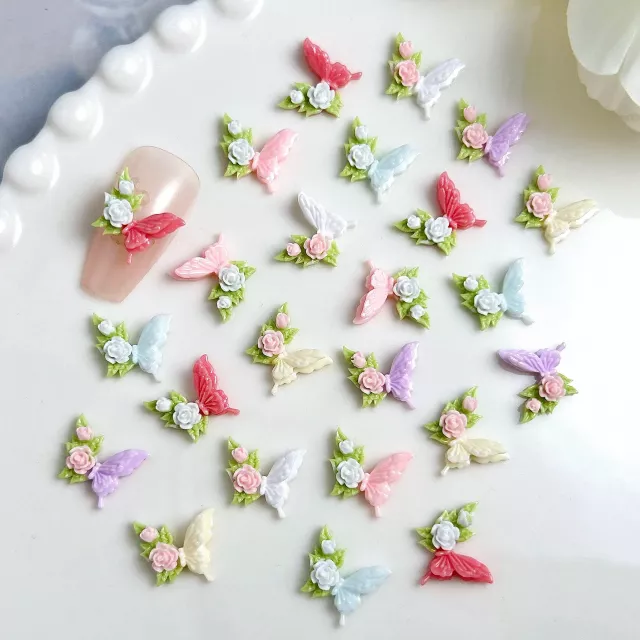 The charming butterfly and flower motifs are timeless, making this set a must-have for anyone who loves nature-inspired designs. They’re also versatile, allowing you to experiment with various styles, from soft pastels to bold, vibrant tones. The resin material is lightweight yet durable, ensuring the charms stay securely in place throughout the day.