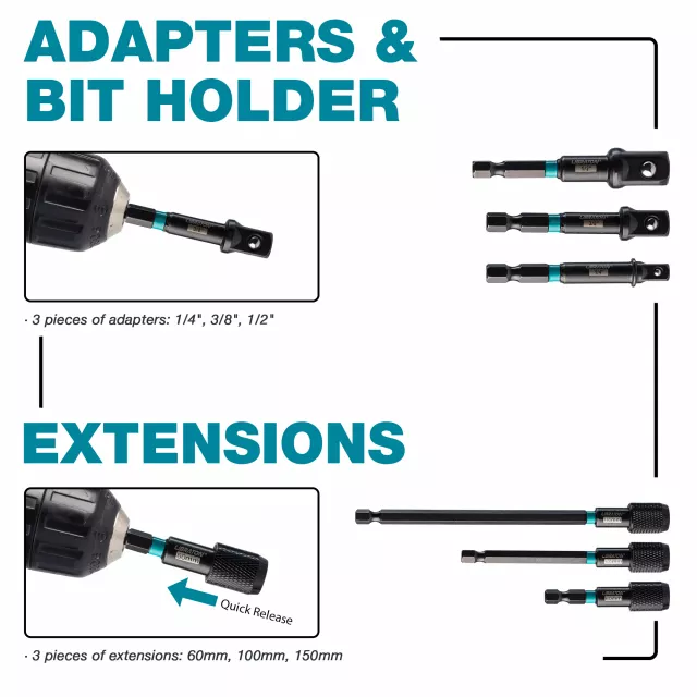 • 3 Impact socket adapters for enhanced performance