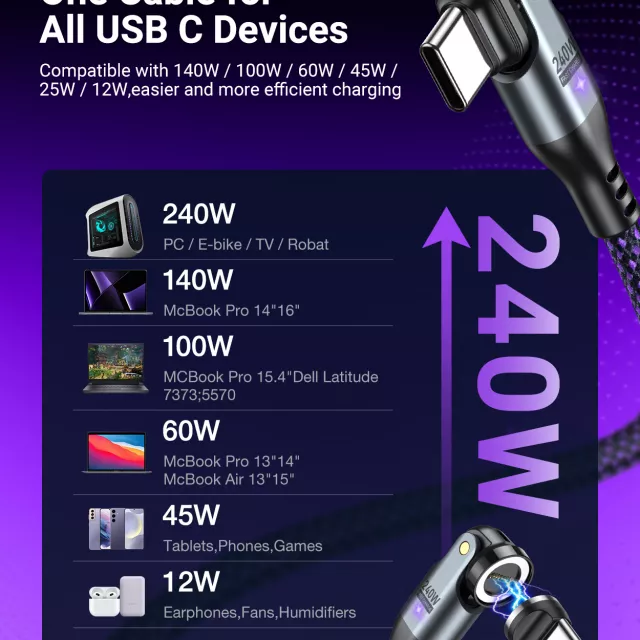 Combine speed, durability, and versatility with this magnetic 240W USB-C cable and enjoy the ultimate charging and data transfer experience for all your devices.