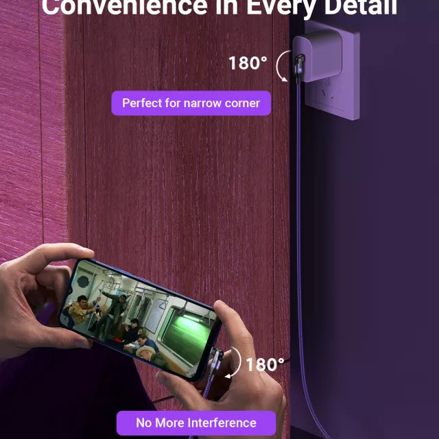 Constructed with a nylon braided cable and aluminum alloy connectors, this charging wire is designed for maximum durability and tangle-free use. The 180° rotating magnetic head adds convenience, preventing cable damage during daily use. With an advanced E-maker chip, it provides intelligent protection against overcurrent, overheating, and short-circuiting, keeping both you and your devices safe.