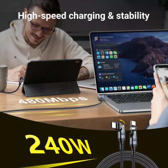 Combine speed, durability, and convenience with this 240W Super Fast USB-C cable and power all your devices efficiently and safely.