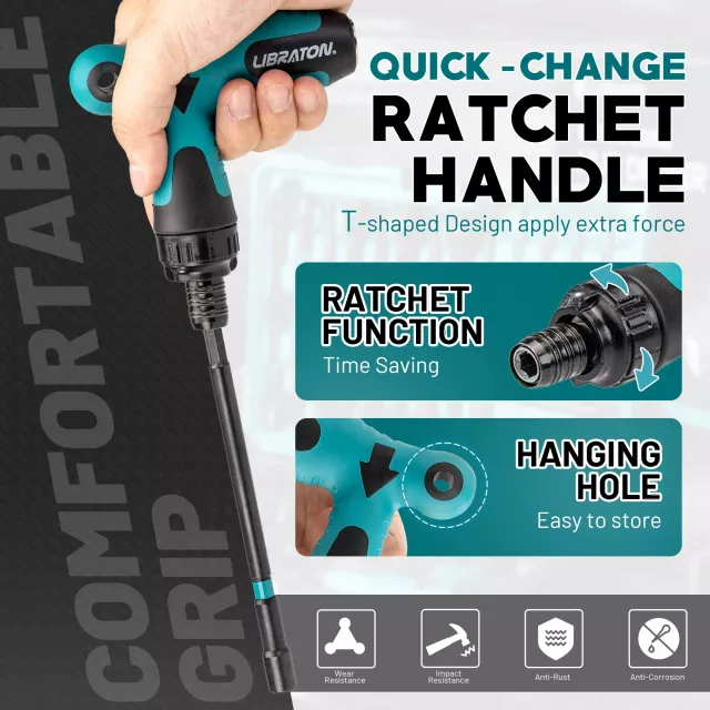 Each nut driver is crafted from high-strength chrome vanadium steel with a protective black phosphate coating for superior durability and corrosion resistance. The 6-inch extended shaft design makes it easy to reach tight or deep spaces, while the powerful magnetic tips hold nuts and bolts securely to prevent frustrating slips. The ratcheting T-handle gives you more torque with less effort, making even tough jobs easier and faster.