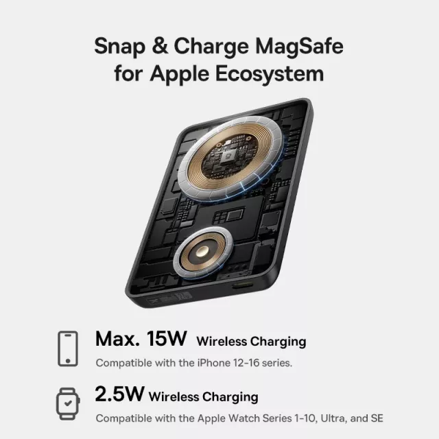 This magnetic power bank is more than just a charger. It’s designed to meet the needs of modern users who demand convenience and performance. Whether you’re traveling, at work, or out for a weekend adventure, this charger keeps your Apple devices powered and ready for anything.