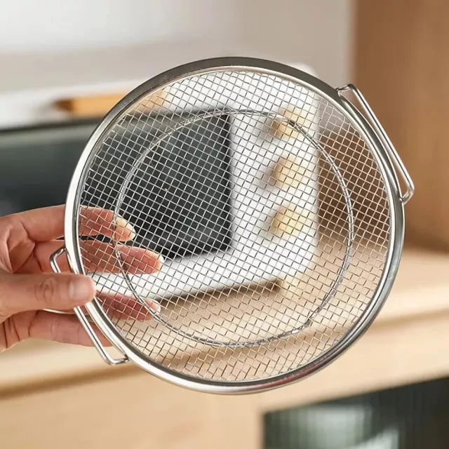 Crafted from high-quality stainless steel, both the round mesh basket and tray are heat-resistant and safe to use in the oven and dishwasher. The tray catches excess oil while the basket lets food cool and drain quickly. It’s your go-to solution for clean, crispy, delicious results every time.
