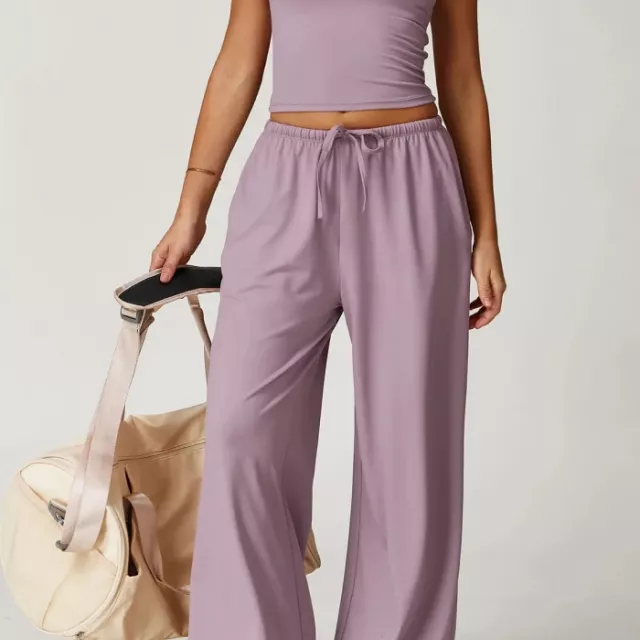 This versatile set is suitable for summer, winter, spring, and autumn, making it your go-to activewear year-round. Whether you’re flowing through a yoga class, hitting the gym, going for a run, or just lounging in style, it delivers the right balance of performance and fashion. The high-waisted pants with an adjustable drawstring provide a secure fit, while the crop top’s sleeveless design allows for complete freedom of movement.
