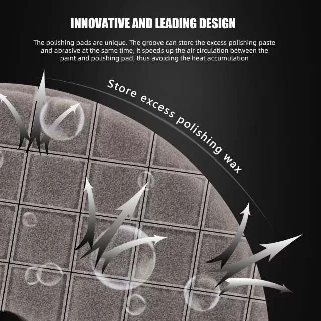 • Innovative Groove Design: The unique groove in the pad stores excess polishing paste and abrasives, speeding up air circulation, preventing heat buildup, and ensuring optimal performance without overheating.