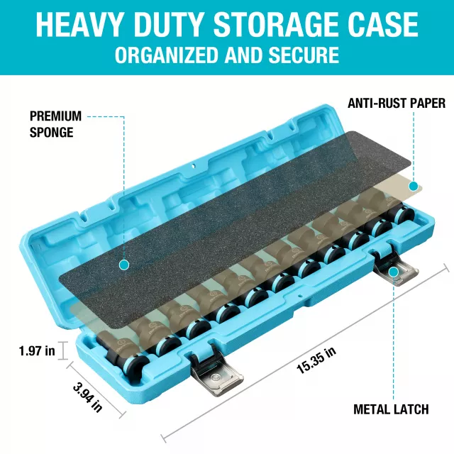 This set is engineered to meet the demands of heavy-duty projects while offering unmatched ease of use. Each socket is crafted from premium, impact-grade steel to withstand high torque and resist wear over time. The shallow design allows easy access in confined areas, while the swivel feature ensures maximum maneuverability. With metric sizes included, you’ll always have the right tool on hand for the job.