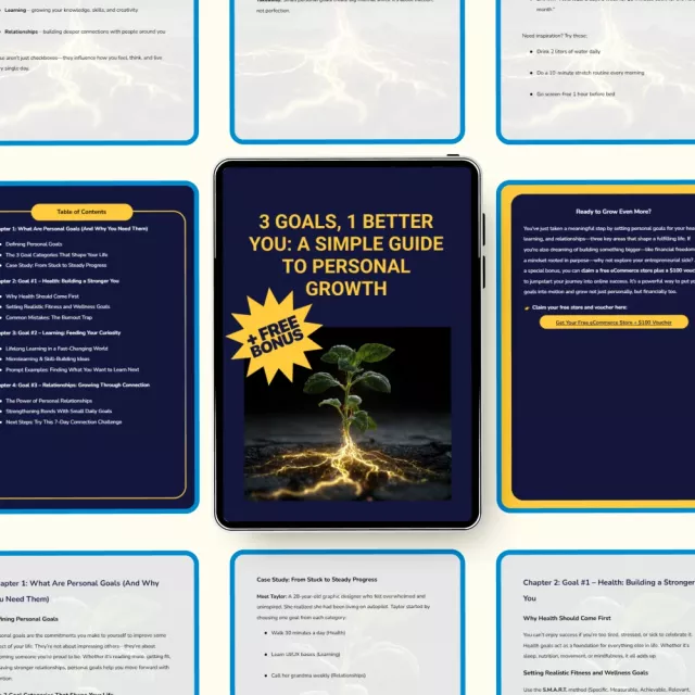 Ready to take charge of your life and become the best version of yourself? “3 Goals, 1 Better You: A Simple Guide to Personal Growth” is the perfect starting point. Whether you’re looking to improve your health, enhance your learning, or strengthen your relationships, this comprehensive guide helps you set achievable, meaningful goals that will transform your life. Download this actionable guide today and start creating the life you’ve always dreamed of!