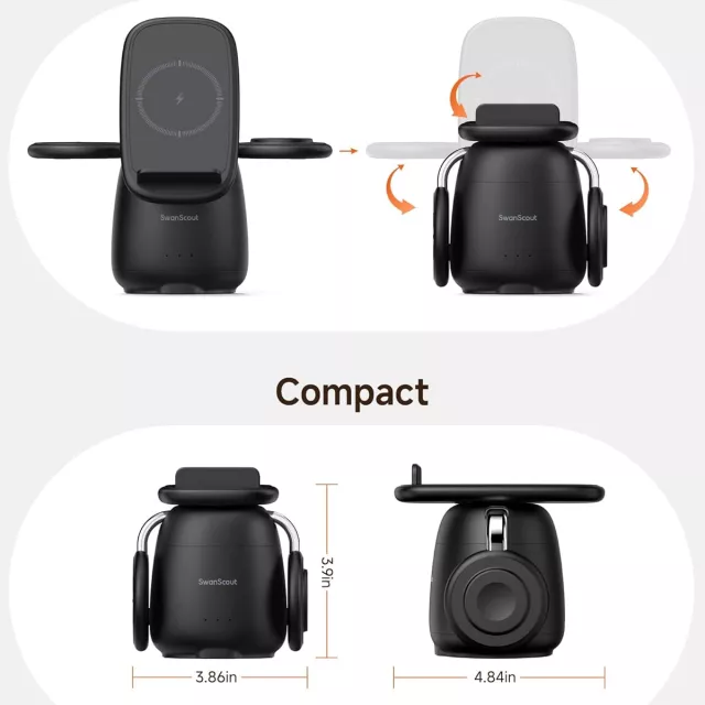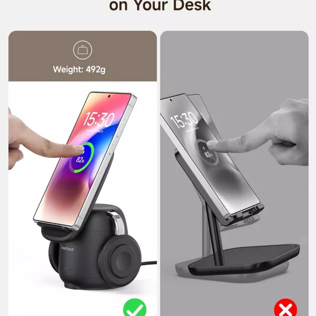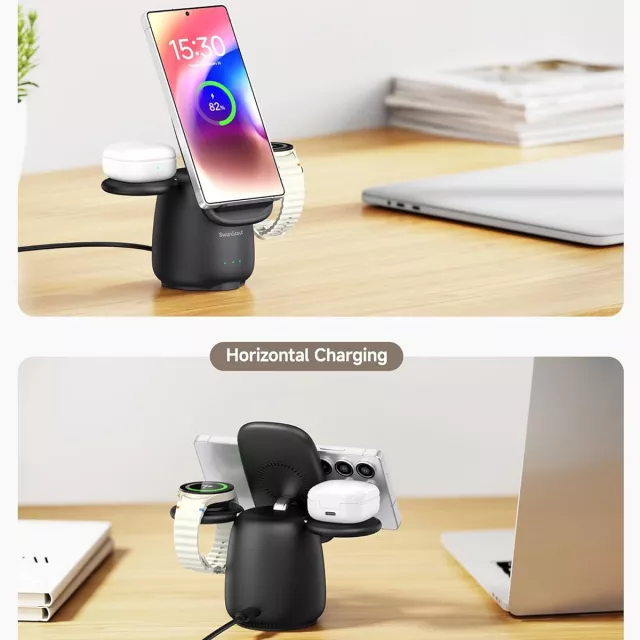 • 3-in-1 Design: Charge your phone, smartwatch, and earbuds all at the same time.