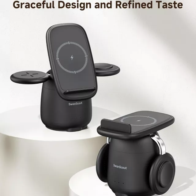 This charging station combines functionality, style, and portability. It’s not just a charger; it’s a charging hub that simplifies your life. With built-in short-circuit protection and an efficient wireless design, your devices stay safe while powering up. The foldable stand lets you adjust angles for video calls, notifications, or simply checking your screen hands-free. Whether at home, the office, or on the go, this is your ultimate charging companion.