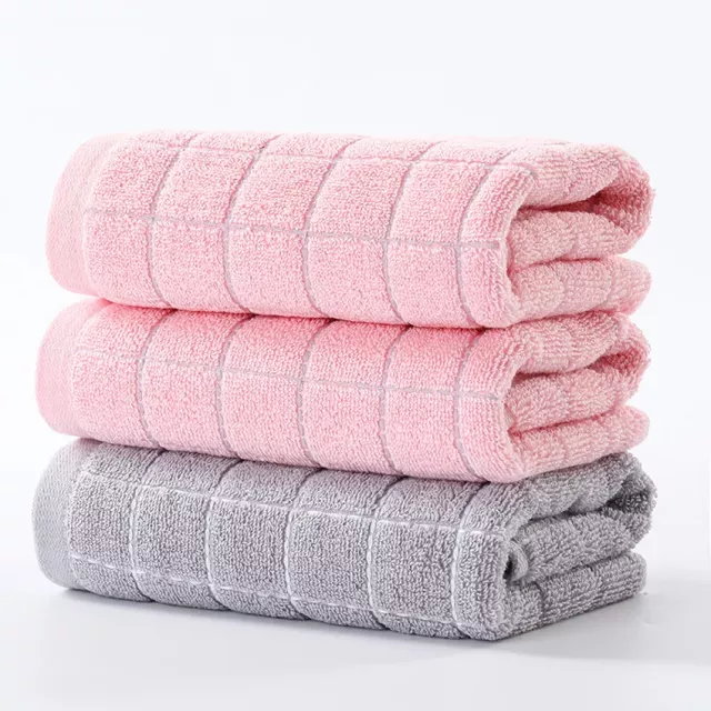 3-Piece Plaid Cotton Face Towel Set – Soft, Thick & Quick-Drying for Home & Spa