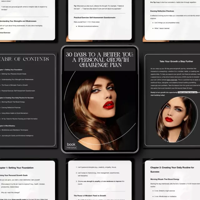 Ready to reset your mindset, rebuild your routines, and become the best version of yourself in just one month? 30 Days to a Better You: A Personal Growth Challenge Plan is a structured, easy-to-follow ebook designed to guide you step by step through meaningful daily growth. This powerful 30 day personal growth challenge plan combines proven personal development strategies with practical exercises so you can build habits, strengthen your mindset, and create real change without feeling overwhelmed.