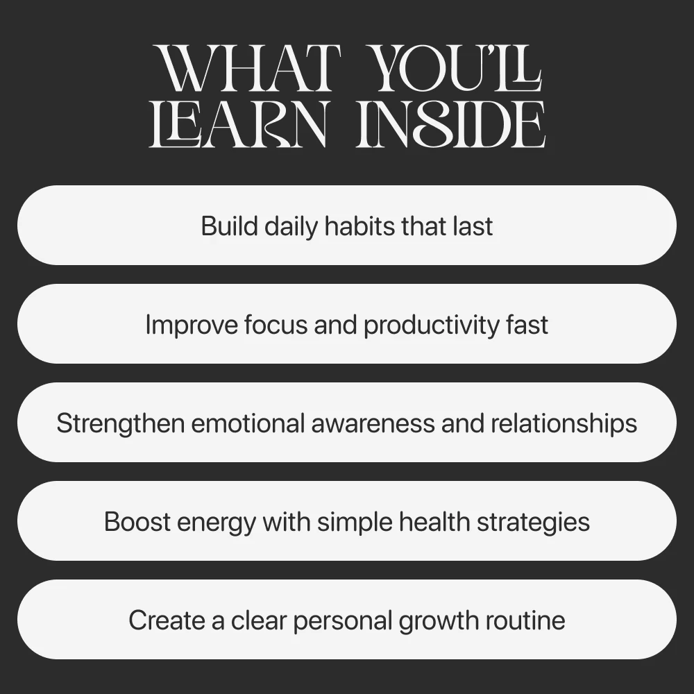 This ebook is perfect for anyone who feels stuck, unmotivated, overwhelmed, or unsure where to start with self-improvement. Whether you’re a busy professional, student, entrepreneur, or simply someone looking for structured self-growth, this 30 day personal growth challenge plan gives you clear direction and daily guidance.