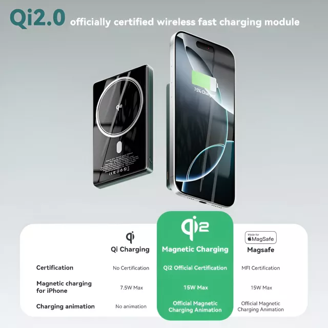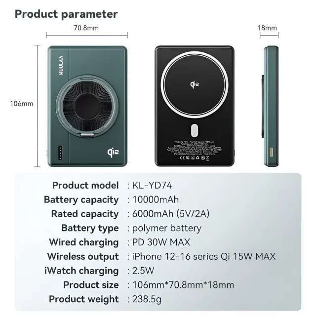 This Magnetic Power Bank is perfect for those always on the move. Its compact design fits easily into your bag or pocket, making it ideal for travel, work, or outdoor adventures. The 10000mAh capacity ensures you can power up your phone or device multiple times, while the 15W wireless charging feature eliminates the need for tangled cords. The built-in stand adds a touch of convenience, allowing you to use your phone comfortably while it charges. Whether you’re watching videos, attending calls, or following a recipe, you can do it all without worrying about battery life.