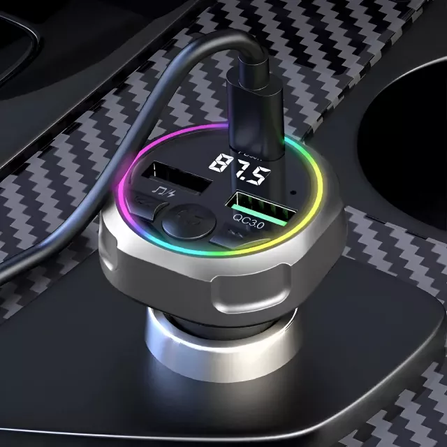 Say goodbye to dark and tedious charging moments! Our FM Transmitter features a mesmerizing 7-color breathing atmosphere light that not only adds a vibrant flair to your car’s interior but also makes plugging in your device easy, even at night. The dynamic lighting effect creates a relaxing environment, ensuring you can always spot your charger no matter the time of day.