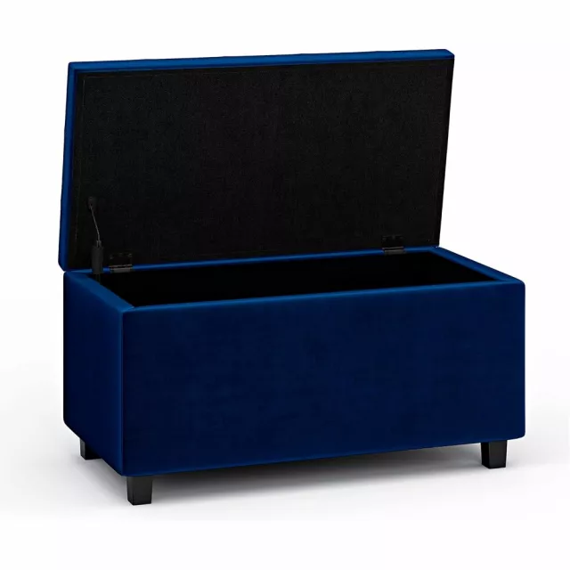 Bring style and smart storage into your space with this 34-Inch Wide Contemporary Rectangle Storage Ottoman, beautifully upholstered in rich blue velvet. With a sleek tufted top and clean lines, this ottoman blends seamlessly with both modern and transitional interiors. Whether you’re elevating your living room decor, adding a statement piece to your bedroom, or organizing your entryway, this multifunctional ottoman delivers both sophistication and practicality in one elegant design.