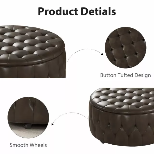 Upgrade your living space with this beautifully crafted 36″ Round Storage Ottoman — a smart and stylish furniture piece that does so much more than just look good. Designed with a tufted faux leather finish and clean modern lines, this versatile ottoman brings a sophisticated touch to any room while offering clever storage solutions and hidden surprises.