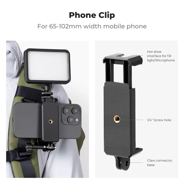 • Wide Compatibility: Works with all GoPro Hero models, DJI Osmo Action and Pocket cameras, and a variety of other action cams. A bonus phone clip supports devices 2.56–4.02 inches wide.