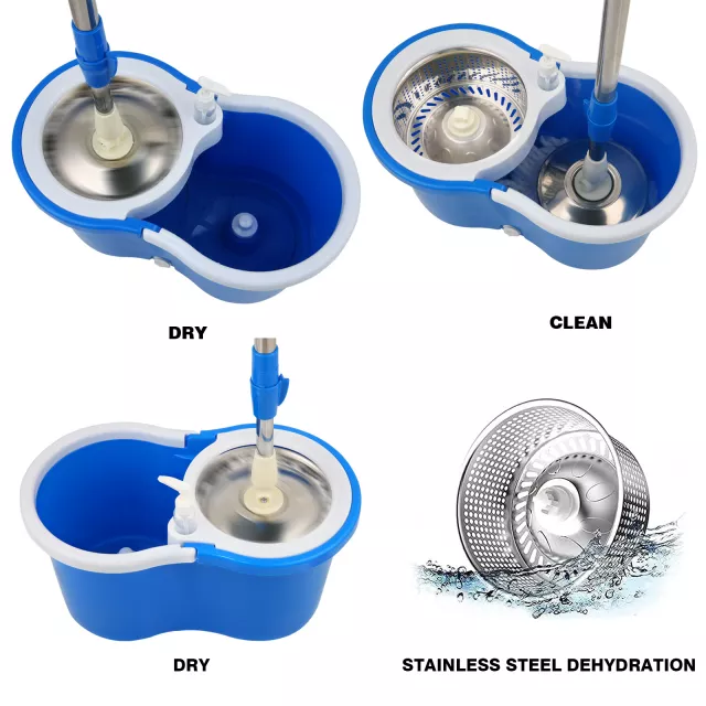 Make floor cleaning faster, easier, and more effective with this all-in-one Spin Mop and Bucket System. Designed with a 360° rotating mop head and an extendable stainless steel handle (up to 61 inches), it reaches under furniture, tight corners, and high ceilings without the need to strain or bend. The heavy-duty bucket comes with a built-in wringer, allowing you to control moisture levels easily for both wet mopping and dry dusting.