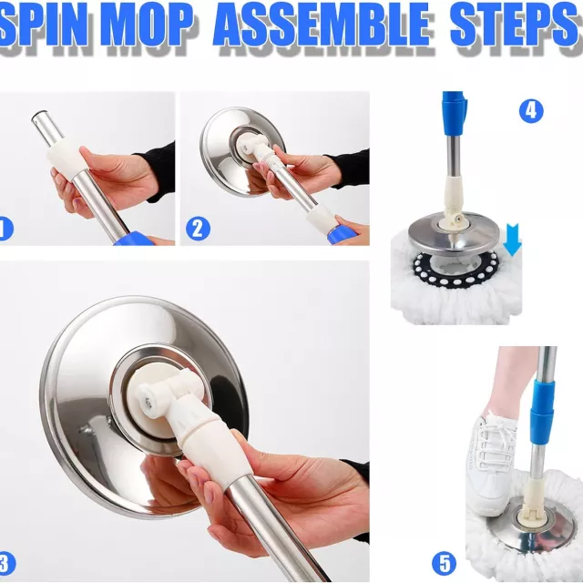 The combination of durable stainless steel and lightweight PP plastic ensures long-lasting performance, while the machine-washable microfiber mop heads absorb water quickly and lift dirt with ease. Compact and space-saving, all parts fit neatly into the bucket for simple storage in any corner of your home. With easy height adjustment and quick assembly, you’ll say goodbye to back pain and messy floors for good.