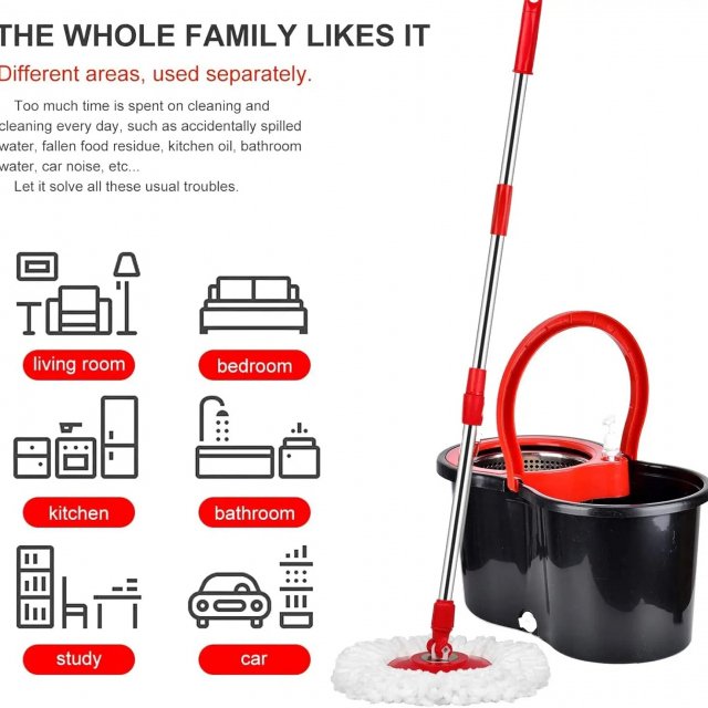 Best used for daily cleaning or tackling occasional spills and messes, this spin mop makes floor cleaning a breeze. With its corrosion-resistant materials, this set is designed for durability and long-lasting performance. The 360° rotating head helps you clean all areas of your home, including hard-to-reach corners and spaces under furniture, making it the go-to tool for quick, efficient cleaning.