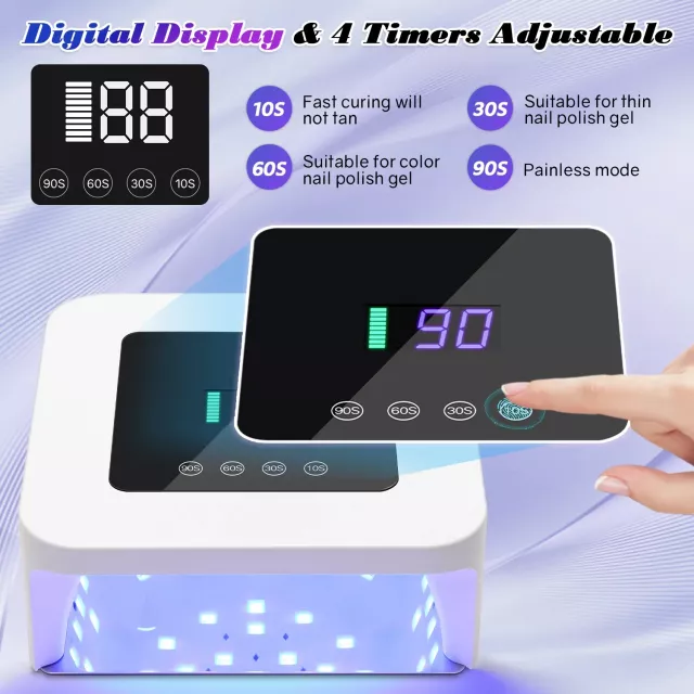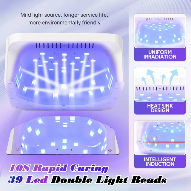 This nail lamp stands out with its combination of portability, speed, and smart features. Unlike traditional wired lamps, you can take it anywhere for a quick manicure session. Its 39 high-powered LED beads provide even coverage, ensuring every nail is cured perfectly in minutes. The adjustable timers and infrared sensor make it easy to customize the drying process based on your polish type and nail thickness, reducing the risk of overexposure and nail damage.