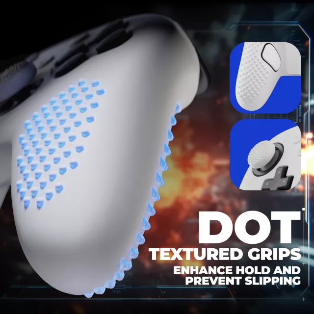 The 3D stud textures are strategically placed to align with your hand’s natural pressure points, improving grip stability, fine control, and overall comfort. Larger studs on the palm and finger support areas help reduce hand fatigue during long gaming sessions, while the textured surface disperses sweat to maintain a secure hold. Whether you’re playing fast-paced FPS games, action-packed adventures, or strategic titles, this cover ensures every move feels precise and confident.