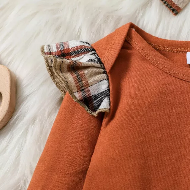 This set isn’t just about looking adorable – it’s about making memories. The soft jersey fabric feels gentle against delicate skin, while the plaid skirt adds a touch of sophistication to your baby’s look. The bow ties it all together, making this outfit an instant standout for photos or special outings. Whether you’re celebrating a milestone, attending a family dinner, or simply enjoying a crisp autumn walk, your little one will look picture-perfect and feel comfortable all day long.