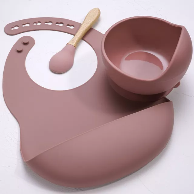 3PCS Silicone Baby Feeding Set with Suction Bowl, Spoon & Waterproof Bib