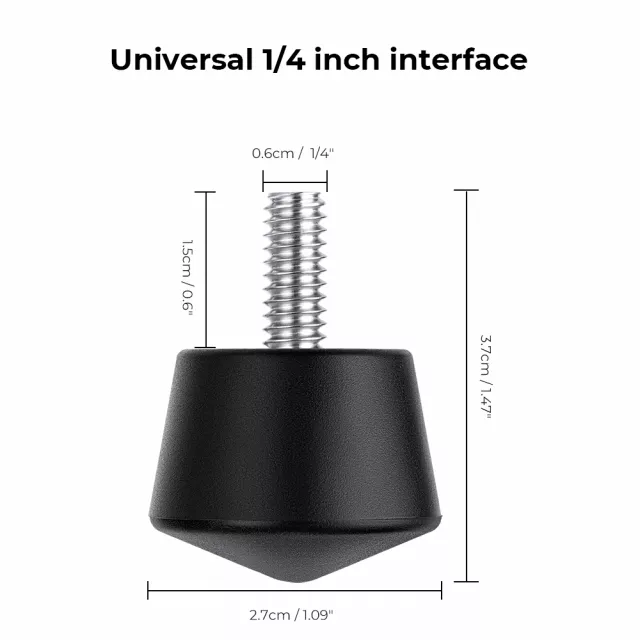 Take your photography to the next level with this 3-piece universal tripod foot spikes set. Designed with a standard 1/4 inch thread, these replacement feet are compatible with most tripods and monopods. Whether you’re shooting indoors or tackling unpredictable outdoor terrain, these anti-slip tripod feet provide the extra stability you need for crisp, professional-quality shots. Crafted from durable silicone rubber, each foot offers strong grip and long-lasting performance, so your tripod stays firmly planted no matter where you set it up.