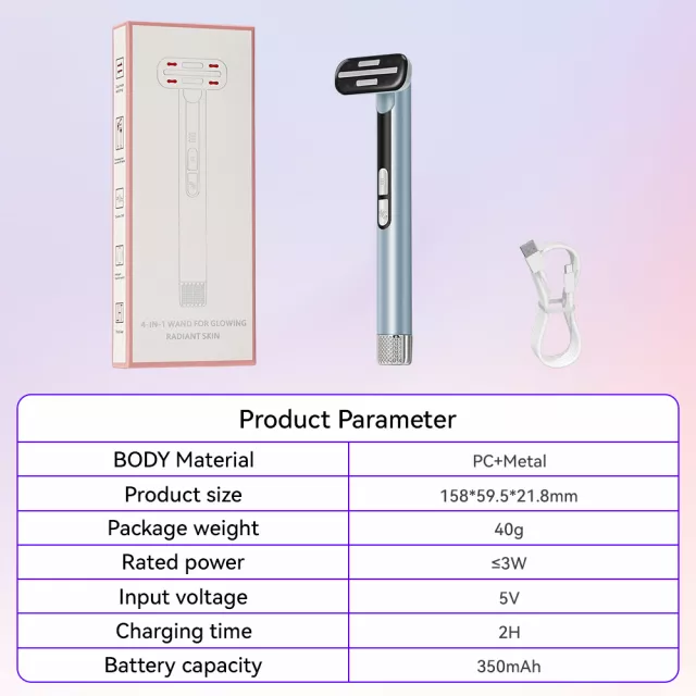 4-in-1 Microcurrent & LED Light Facial Wand with EMS Massage & Heat Therapy