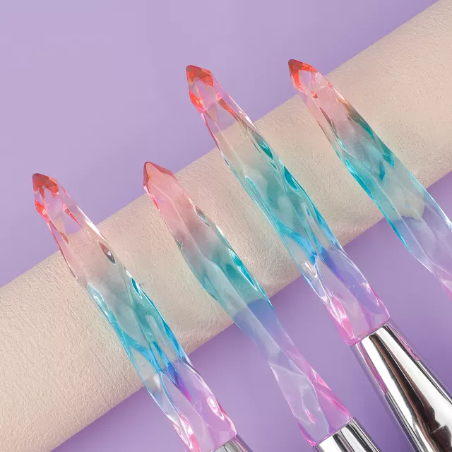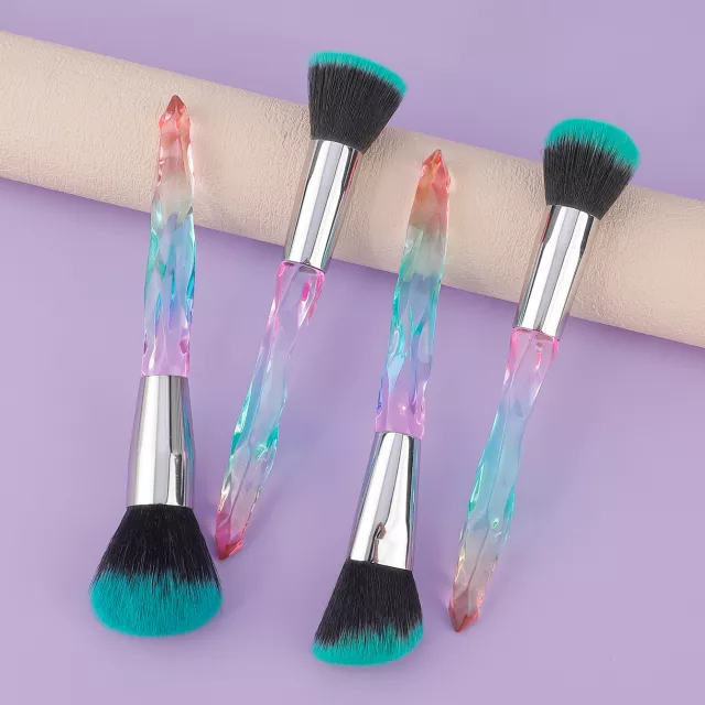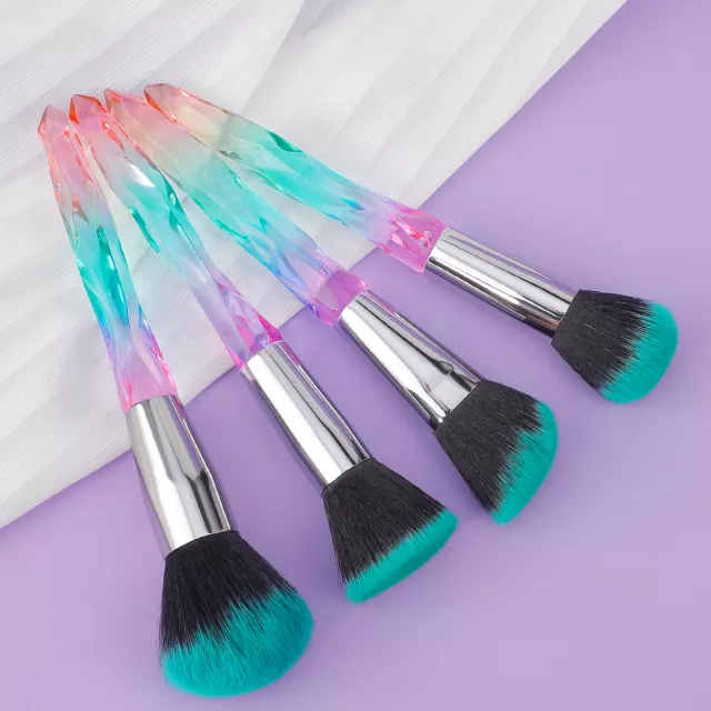 Bring a touch of sparkle to your beauty routine with this 4-piece crystal handle makeup brush set. Each brush is designed to deliver smooth, flawless application for foundation, concealer, face powder, and eyeshadow. The vibrant diamond-style handles are not only visually stunning but also provide a comfortable grip, making your makeup routine feel luxurious and effortless.