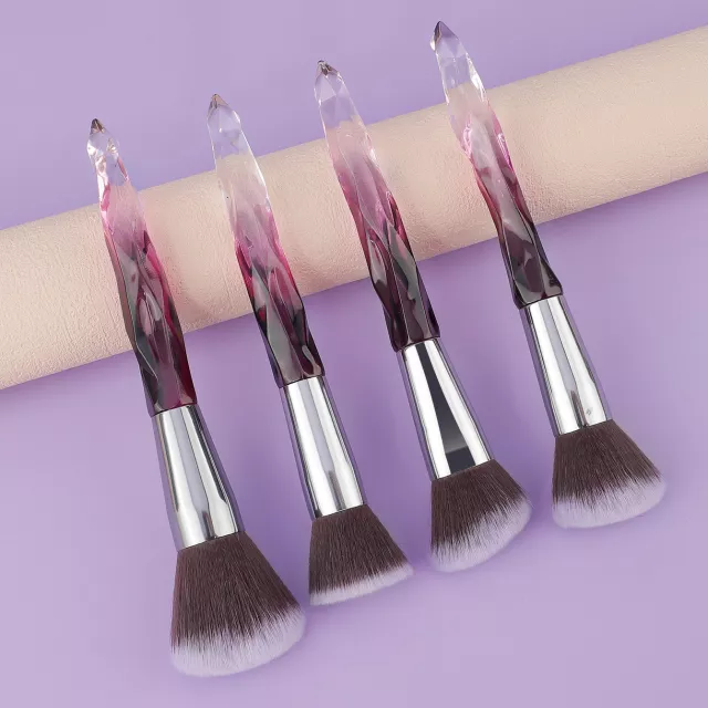 4-Piece Crystal Handle Makeup Brush Set for Foundation & Eyeshadow