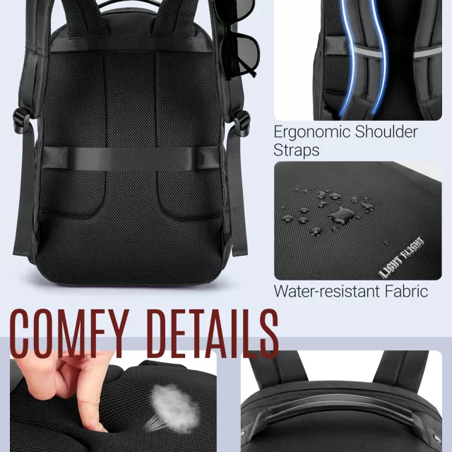 • Large Capacity: 40L of space to pack clothes, electronics, and travel essentials without feeling bulky.